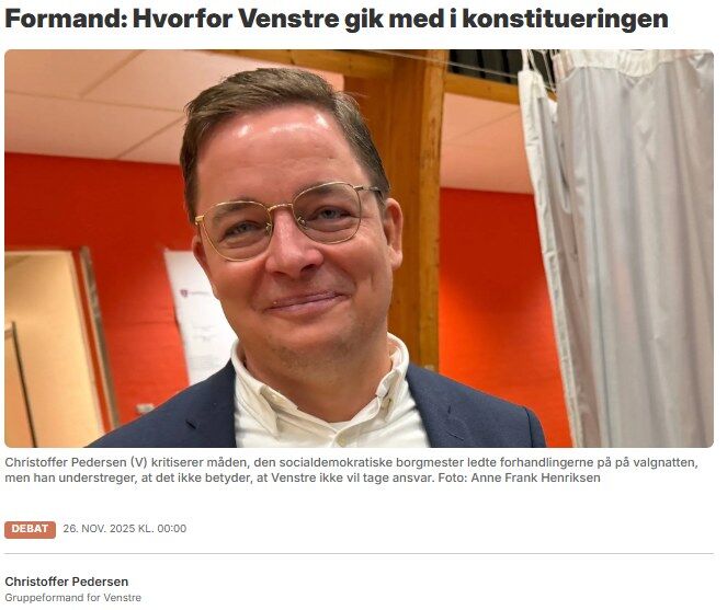 Vores lokalredaktør undrer sig over Venstres tilgang til konstitueringsaftalen i det nye byråd. Det forstår jeg sådan set ikke. Men jeg forklarer i indlægget her, hvorfor vi valgte som vi gjorde. Og også hvorfor vi er meget lidt imponerede af den genvalgte borgmesters forhandlingstilgang.